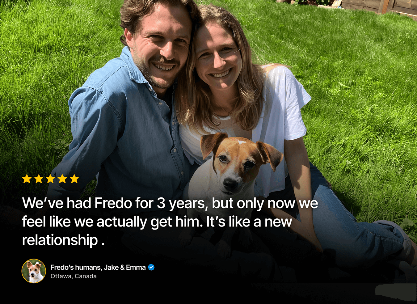 No more jumping chaos. Toby finally greets people with all four paws on the ground.